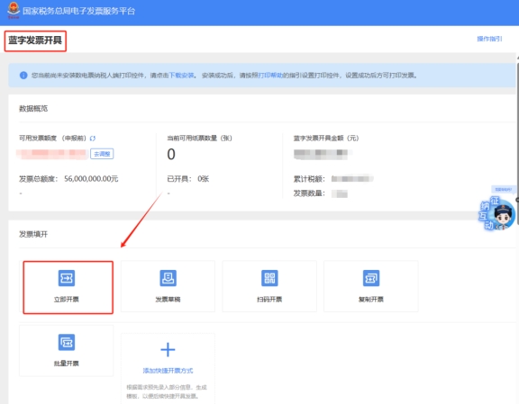 答、您好,請您打開電子稅務局網頁后點擊登錄頁面右上角“新版登錄”,然后選擇“企業(yè)業(yè)務”登錄進來后依次點擊:【我要辦稅】一【開票業(yè)務】一【藍字發(fā)票開具】一【立即開票】進入發(fā)票填開頁面輸入購銷方信息及開票信息,信息都填寫無誤后點擊頁面下方“發(fā)票開具”即可開票成功。