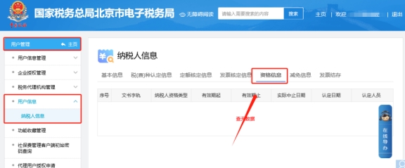 二、用戶(hù)管理—用戶(hù)信息—納稅人信息—資格信息,查詢(xún)一般納稅人資格有效期起。
