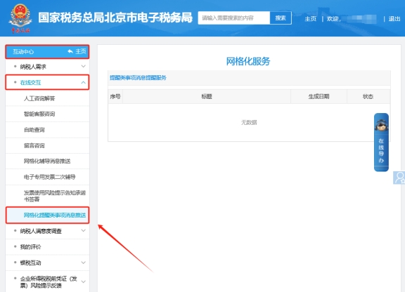 三、或互動(dòng)中心—在線交互—網(wǎng)格化提醒類事項(xiàng)消息推送查看。