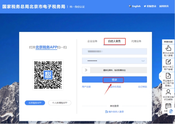 二、【自然人業(yè)務(wù)】登錄個(gè)人賬戶。