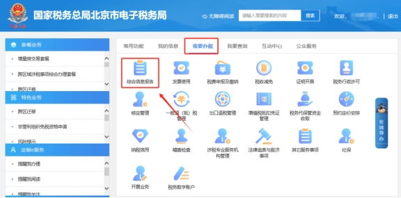 問:外省市企業(yè)如何在北京市電子稅務(wù)局上進(jìn)行增值稅預(yù)繳申報(bào)?  答:您好,請使用企業(yè)身份下的三員(法定代表人、財(cái)務(wù)負(fù)責(zé)人、辦稅員)在電子稅務(wù)局網(wǎng)站上,點(diǎn)擊右上角【新版登錄】—【自然人業(yè)務(wù)】登錄個(gè)人賬戶,點(diǎn)擊【我要辦稅】—【綜合信息報(bào)告】—【稅源信息..