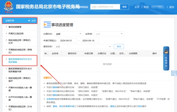 二、證明開具—服務(wù)貿(mào)易等項(xiàng)目對(duì)外支付稅務(wù)備案。