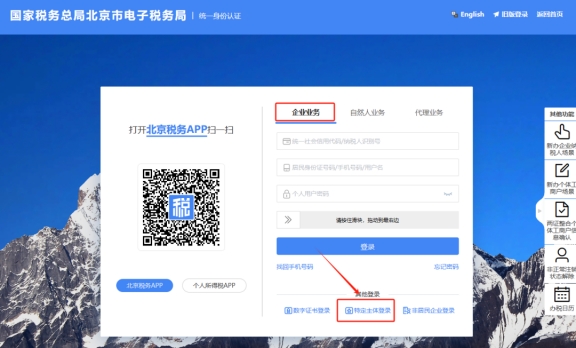 三、也可以通過電子稅務(wù)局新版登錄界面,選擇【企業(yè)業(yè)務(wù)】下方的“特定主體登錄”進入電子稅務(wù)局,然后在主頁右上角點擊切換主管稅務(wù)機關(guān)。