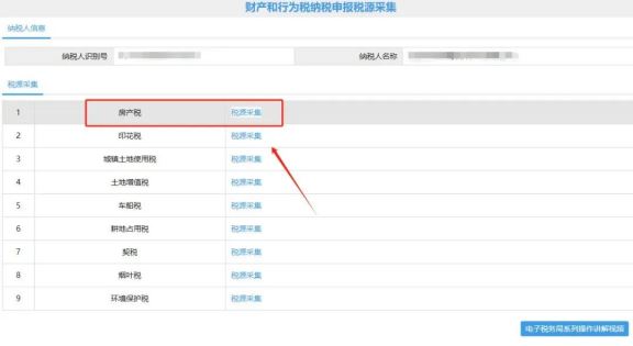 四、找到“房產(chǎn)稅”后點(diǎn)擊【稅源采集】。