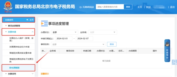 答:您好,請通過電子稅務局【我要辦稅】—【發(fā)票使用】—【發(fā)票申請】—【數(shù)電票賦額】模塊進入,進入后如沒有監(jiān)控信息,請瀏覽系統(tǒng)文字提示內(nèi)容,確認無誤后點擊“下一步”。待系統(tǒng)界面出現(xiàn)“涉稅事項受理系統(tǒng)回執(zhí)單”,即表示該業(yè)務已成功提交。可在“事項進度管理”中查詢業(yè)務事項的受理進度。