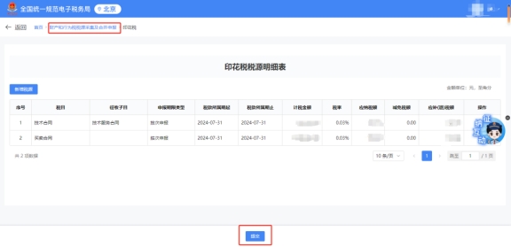 如果您需要更正申報(bào)表,可以點(diǎn)擊【更正】,頁面跳轉(zhuǎn)至財(cái)產(chǎn)和行為稅稅源采集及合并申報(bào)界面,填報(bào)無誤后點(diǎn)擊【提交】即完成申報(bào)更正。