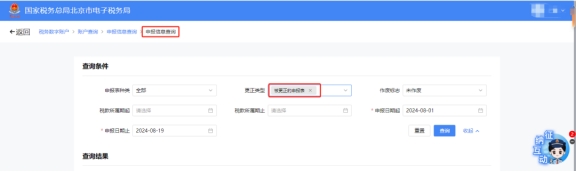 如果您需要查詢被更正的申報(bào)表信息,可通過【稅務(wù)數(shù)字賬戶】-【賬戶查詢】-【申報(bào)信息查詢】功能,或搜索欄直接搜索【申報(bào)信息查詢】,更正類型選擇“被更正的申報(bào)表”。