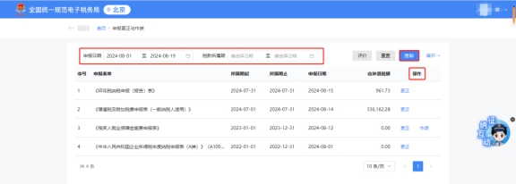 您可通過右側(cè)“操作”列提供的【更正】、【作廢】完成對(duì)應(yīng)申報(bào)表單的相關(guān)操作。