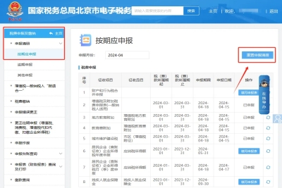 二、稅費申報及繳納—申報清冊—按期應申報頁面在右上角點擊“重置申報清冊”,然后帶出新的報表后請再填寫申報即可。