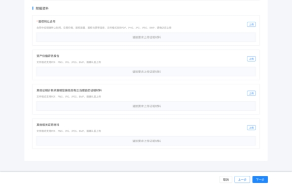 納稅人依次上傳所需資料,完成后進(jìn)入下一模塊。