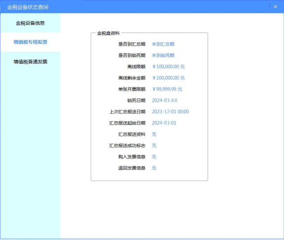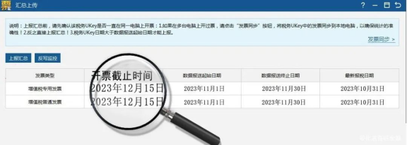 ●開(kāi)票軟件網(wǎng)絡(luò)穩(wěn)定的前提下登錄稅務(wù)UKey開(kāi)票軟件自動(dòng)上報(bào)匯總,申報(bào)完成后,再次登錄開(kāi)票軟件,開(kāi)票截止時(shí)間自動(dòng)順延至2024年1月15日。如下圖所示: