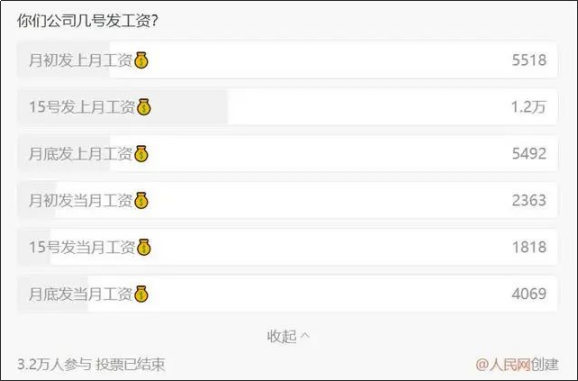 近日,  “為什么很多公司選擇15號發(fā)工資”  話題沖上微博熱搜?! 〔簧倬W(wǎng)友表示,  自己也是“15號發(fā)工資”;  在媒體發(fā)起的問卷調查中,  “15號發(fā)上月工資”選項遙遙領先,  占總參與人數(shù)的37.5%?! 槭裁床辉谠碌装l(fā)本月工資?  如..