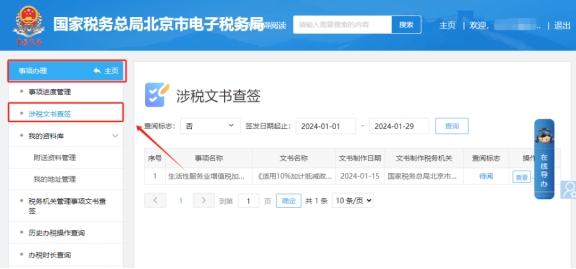 二、事項(xiàng)辦理—涉稅文書查簽中簽收文書。