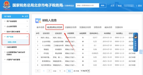 (1)請(qǐng)您點(diǎn)擊【我的信息】—【納稅人信息】—【稅(費(fèi))種認(rèn)定信息】查看;