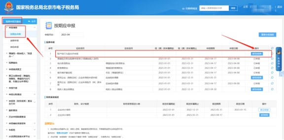 二、稅費(fèi)申報(bào)及繳納—申報(bào)清冊—按期應(yīng)申報(bào)—財(cái)產(chǎn)和行為稅合并申報(bào)。