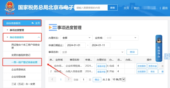 二、綜合信息報(bào)告—身份信息報(bào)告—一照一碼戶登記信息變更。