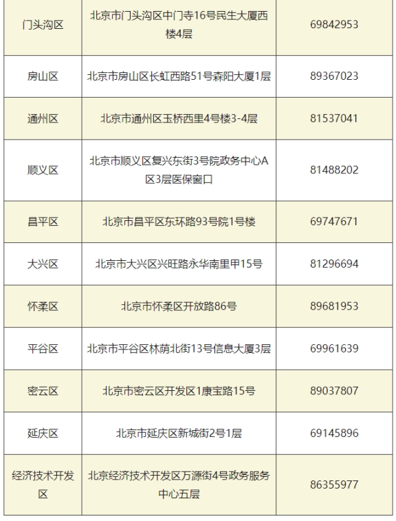 北京市各區(qū)醫(yī)保經(jīng)辦電話