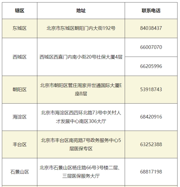北京市各區(qū)醫(yī)保經(jīng)辦電話(huà)