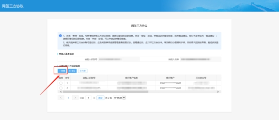 三、網簽三方協(xié)議頁面點擊新增,新增-選擇銀行信息點擊確認-自動帶出清算銀行行號、開戶銀行行號,選擇批扣標志(請根據(jù)實際需求判斷選擇),點擊右上角保存一下一步一會看到一個回執(zhí),點擊關閉-重新返回到網簽三方協(xié)議頁面-選擇未驗證的協(xié)議-點擊“驗證”-協(xié)議狀態(tài)顯示“驗證通過”后協(xié)議即簽訂成功。