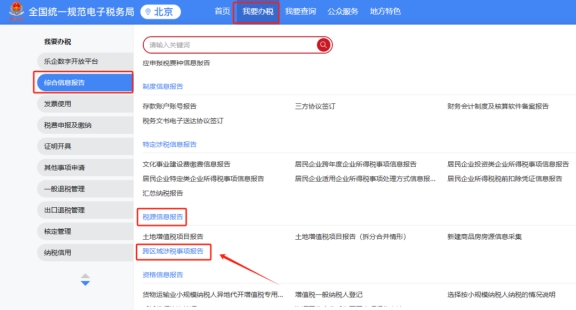 一、我要辦稅—綜合信息報(bào)告—稅源信息報(bào)告—跨區(qū)域涉稅事項(xiàng)報(bào)告。
