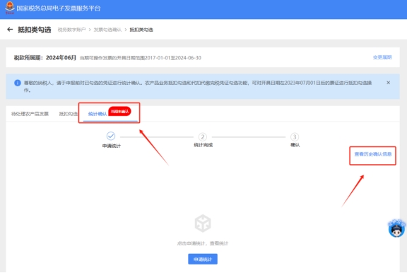 注:若要查詢往期數(shù)據(jù),可在此頁面點擊右側(cè)【歷史確認(rèn)信息】進(jìn)入,選擇需要查看的所屬月份即可。