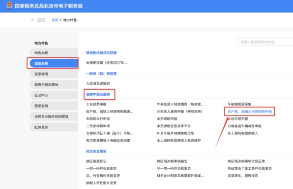 北京企業(yè)逾期未申報(bào)房產(chǎn)稅是否可以在網(wǎng)上辦理?還是需要前往稅務(wù)機(jī)關(guān)上門辦理?  答、房產(chǎn)稅、城鎮(zhèn)土地使用稅逾期申報(bào)如不修改往期稅源,可以通過【地方特色】—【我要辦稅】—【稅費(fèi)申報(bào)及繳納】—【房產(chǎn)稅、城鎮(zhèn)土地使用稅申報(bào)】—【財(cái)產(chǎn)和行為稅逾期申報(bào)】。”..