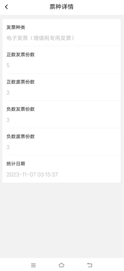 發(fā)票種類(領(lǐng)票)的“票種詳情”界面查詢結(jié)果顯示如下。