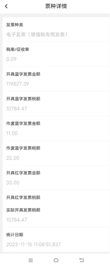 按稅率/征收率的“票種詳情”界面查詢結(jié)果顯示如下。