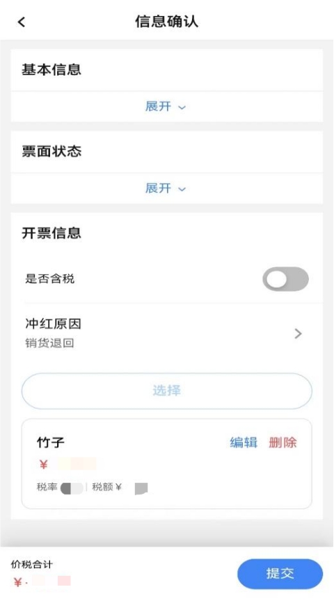 納稅人開具藍(lán)字發(fā)票后,發(fā)生銷貨退回(包括全部退回和部分退回)、開票有誤、服務(wù)中止(服包括全部中止和部分中止)、銷售折讓等情形,按規(guī)定開具紅字發(fā)票。移動(dòng)端僅支持開具紅字電子發(fā)票,且不支持特定業(yè)務(wù)發(fā)票的紅沖。