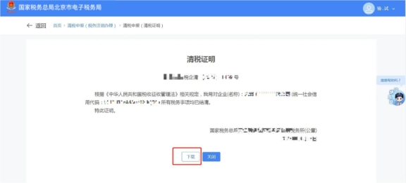 ?、芴D(zhuǎn)至清稅證明界面,點(diǎn)擊【下載】進(jìn)行清稅證明下載。