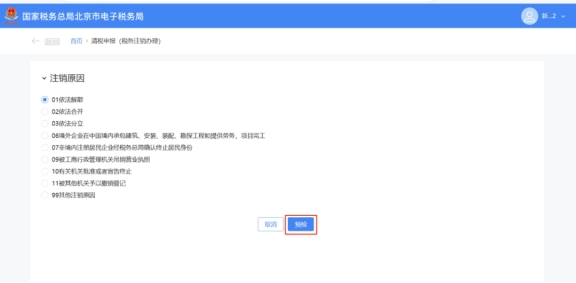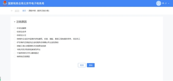 跳轉(zhuǎn)至清稅申報(bào)(稅務(wù)注銷辦理)界面,展示注銷原因。