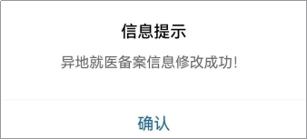 4、點擊【確認】后,居民的異地就醫(yī)備案信息已成功修改。